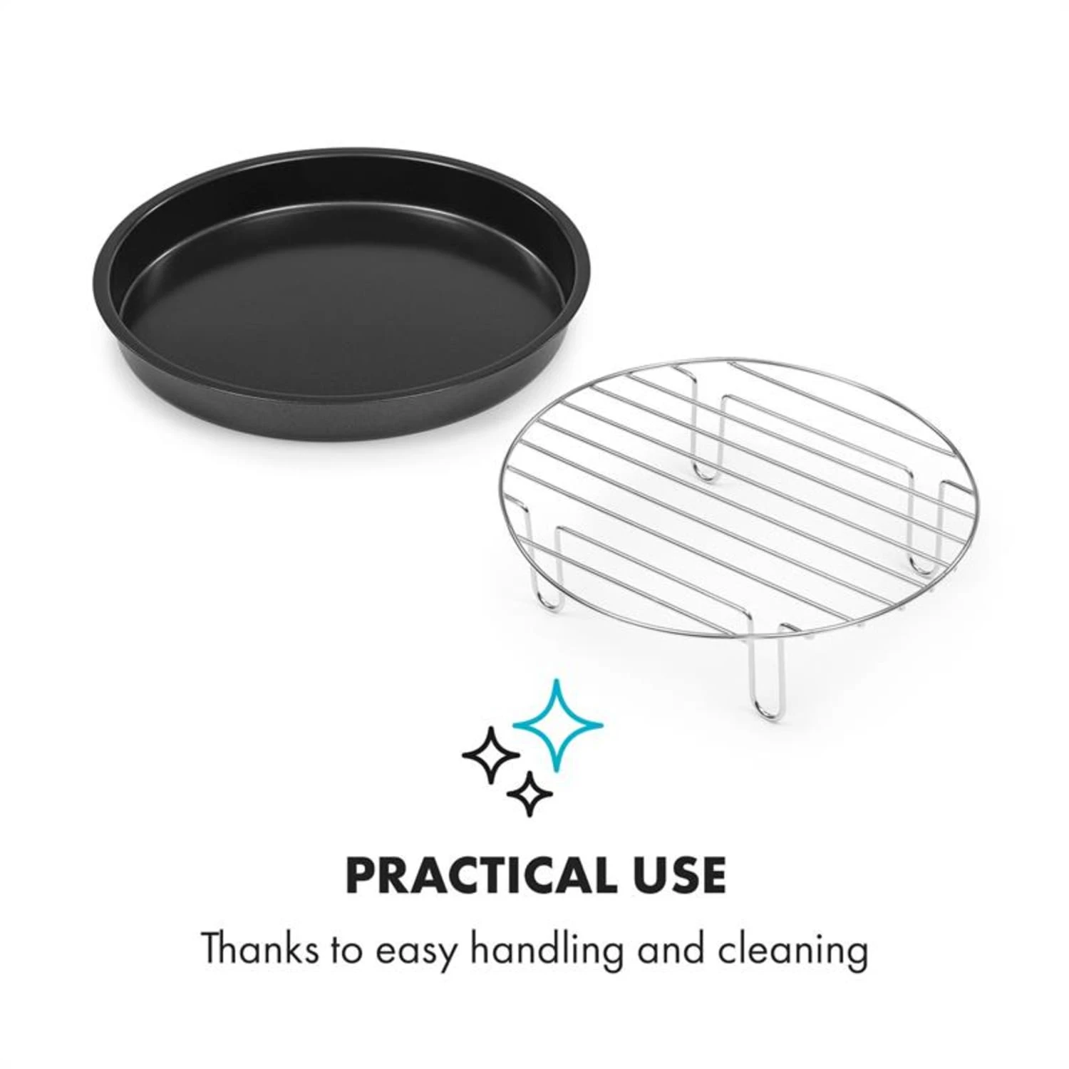 Der Klarstein Pizzateller mit hohem Grilleinsatz hievt die AeroVital Cube Chef Heißluftfritteuse auf eine neue Ebene der Zubereitung knuspriger Pizzas, luftiger Omeletts sowie leckerer Gemüsepfannen oder Spiegeleier. Der hohe Grilleinsatz kann als zusätzliche Grillebene für Fleisch, Fisch und Gemüse oder auch als praktischer Metallhalter für den Pizzateller verwendet werden.