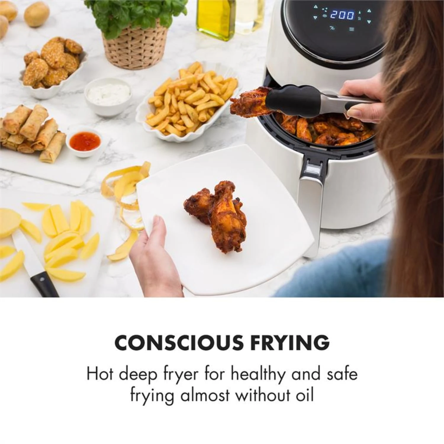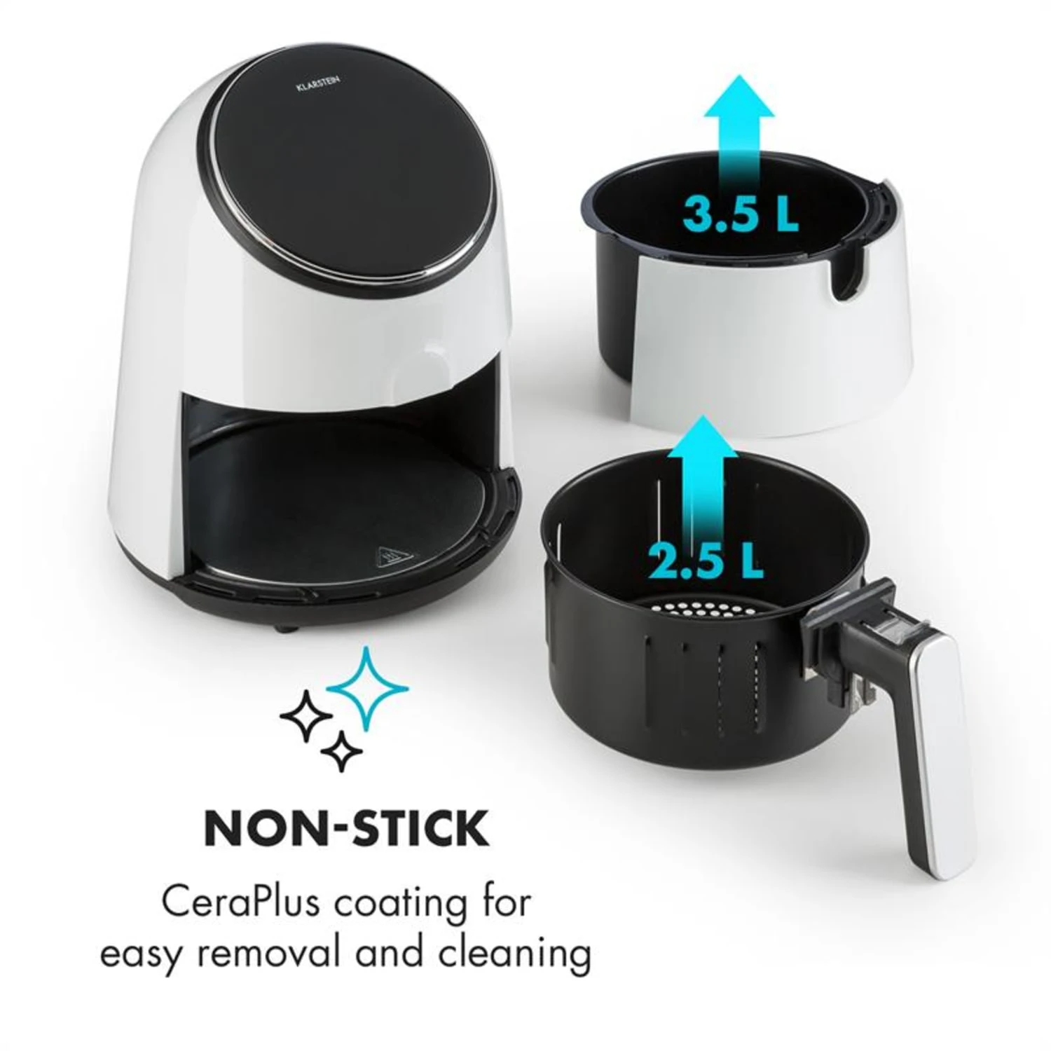 AirVital Heißluftfritteuse 1300W 2,5l CeraPlus-Antihaft Touch Weiß
