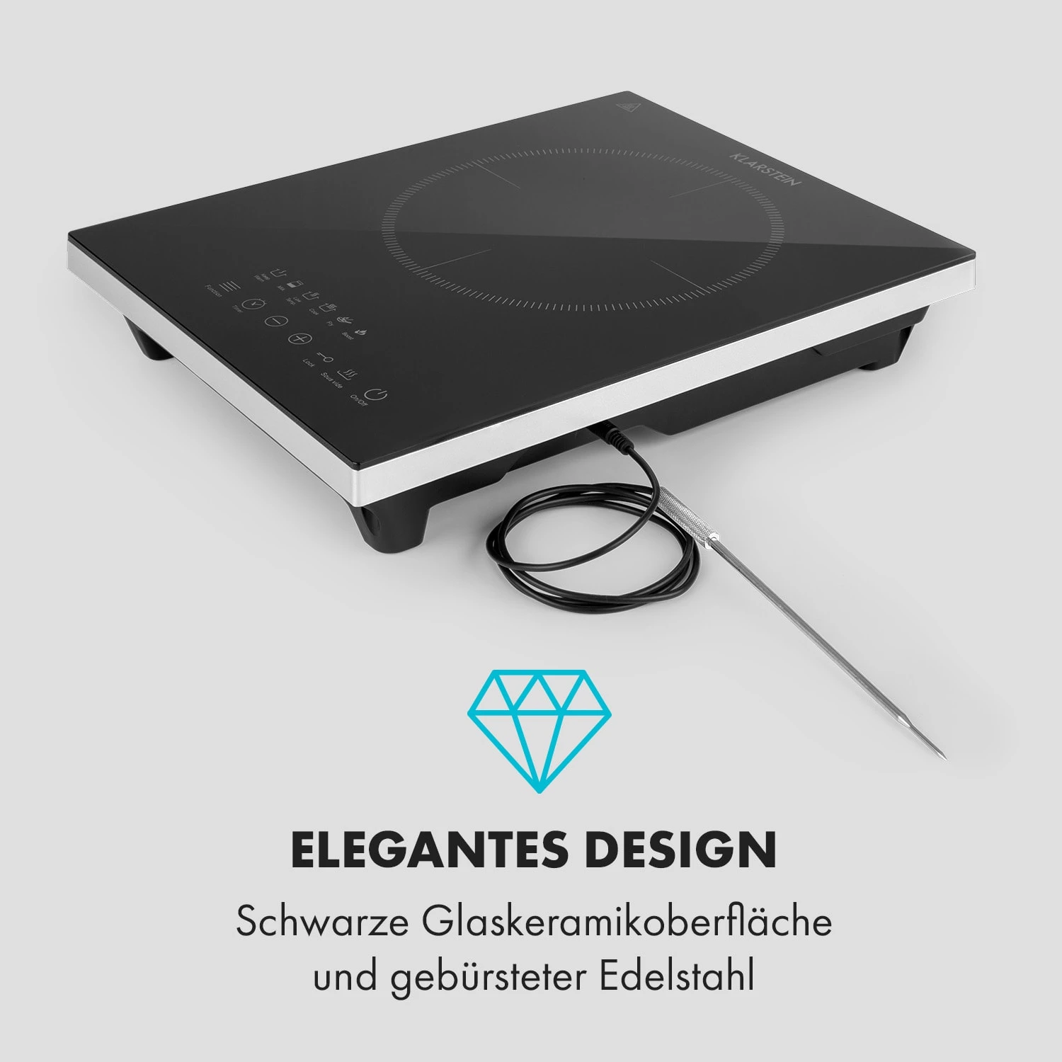 Cook N Roll Induktionskochfeld 2000W Timer 10 Stufen Bratenthermometer
