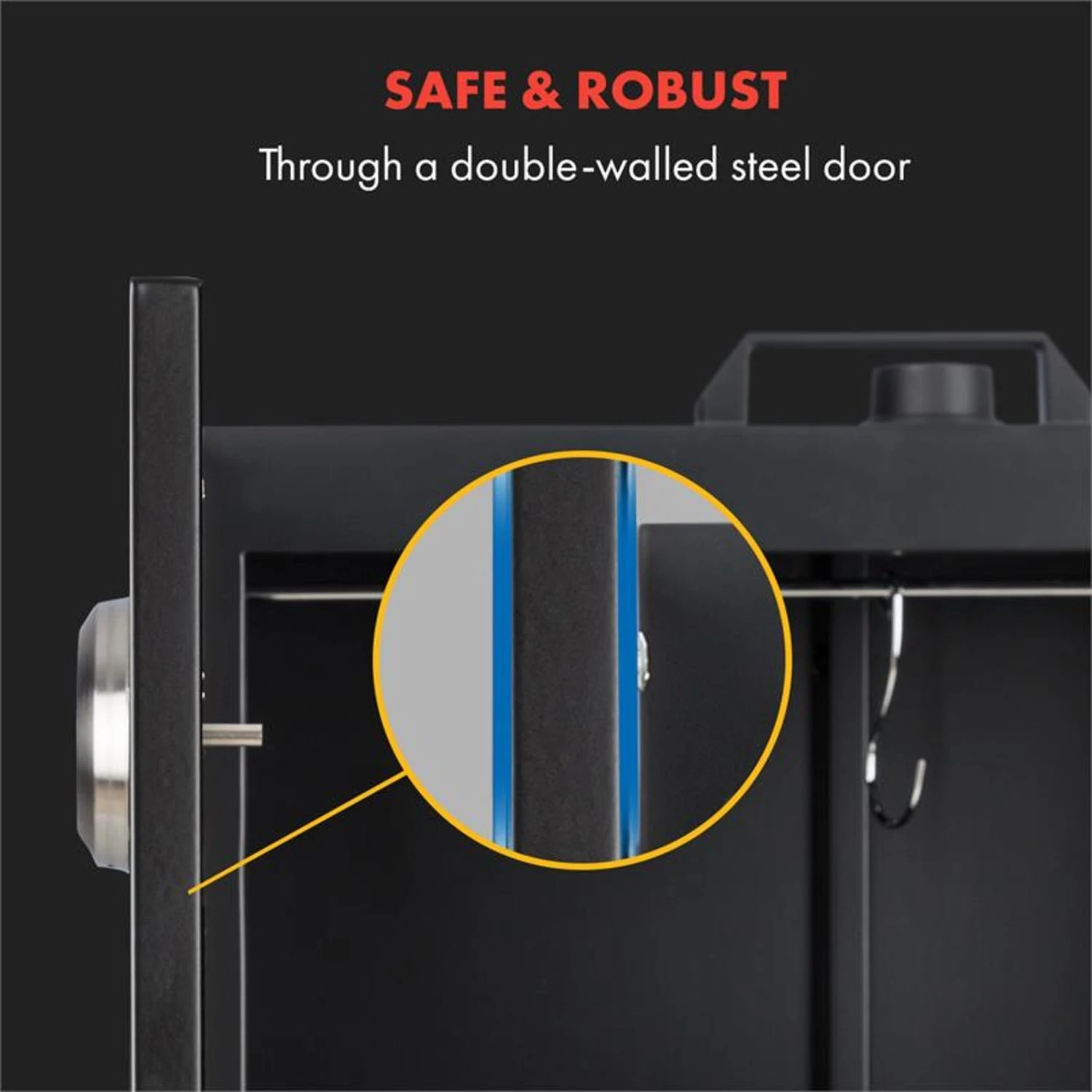 - Geräteaußenseite mit schwarzer Pulverbeschichtung, Tür aus gebürstetem Edelstahl