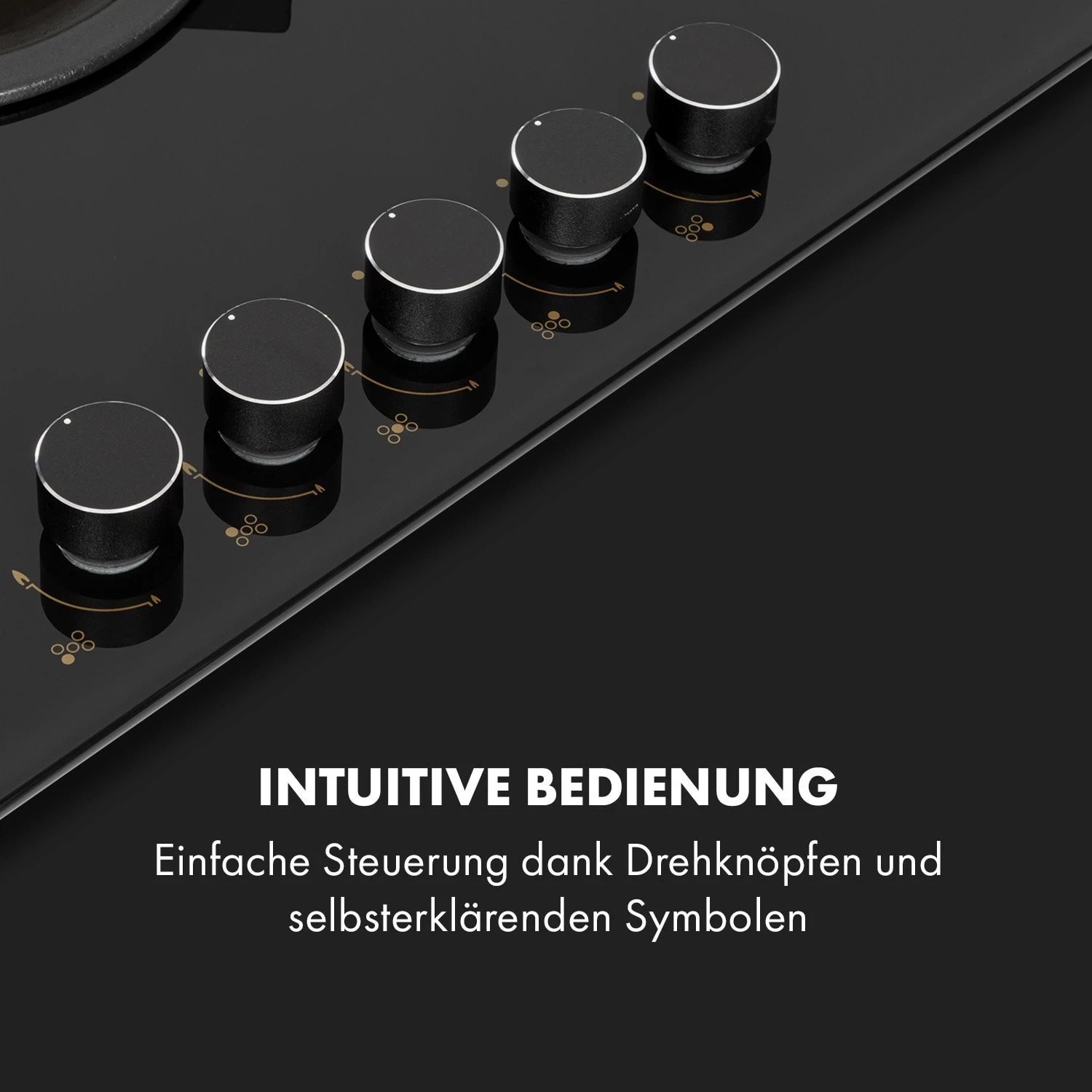 Goldflame 5 Gaskochfeld 5-flammig Messing-Brenner Glaskeramik Schwarz