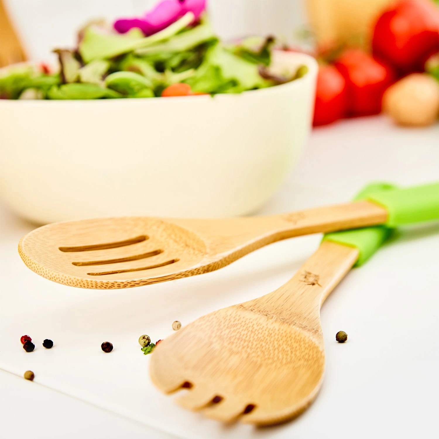 Praktischer Helfer im Alltag: Das hochwertige Küchenzubehör von Klarstein aus echtem Bambus mit Silikongriffen.