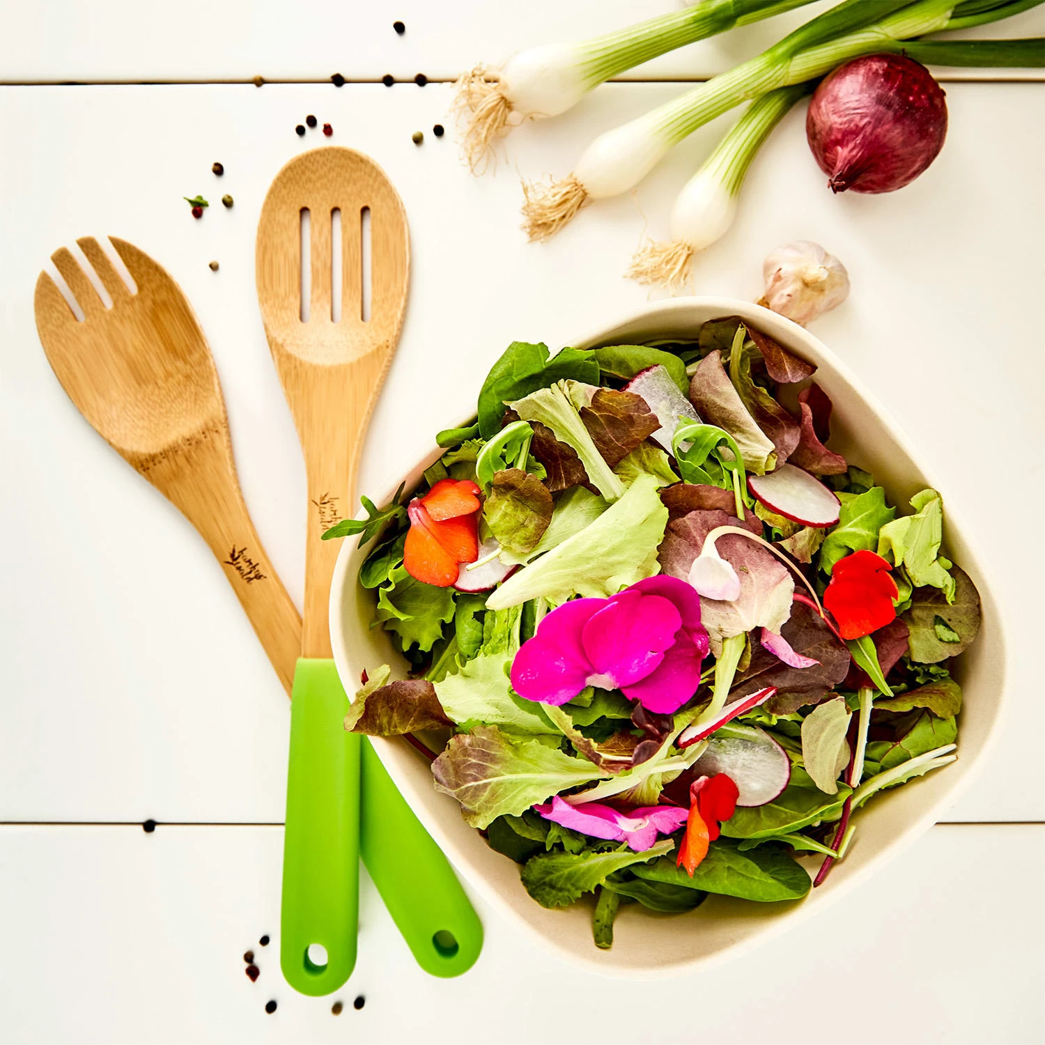 - bestehend aus 2 Pfannenhebern und 1 Salatbesteck, 1 Kochlöffel
