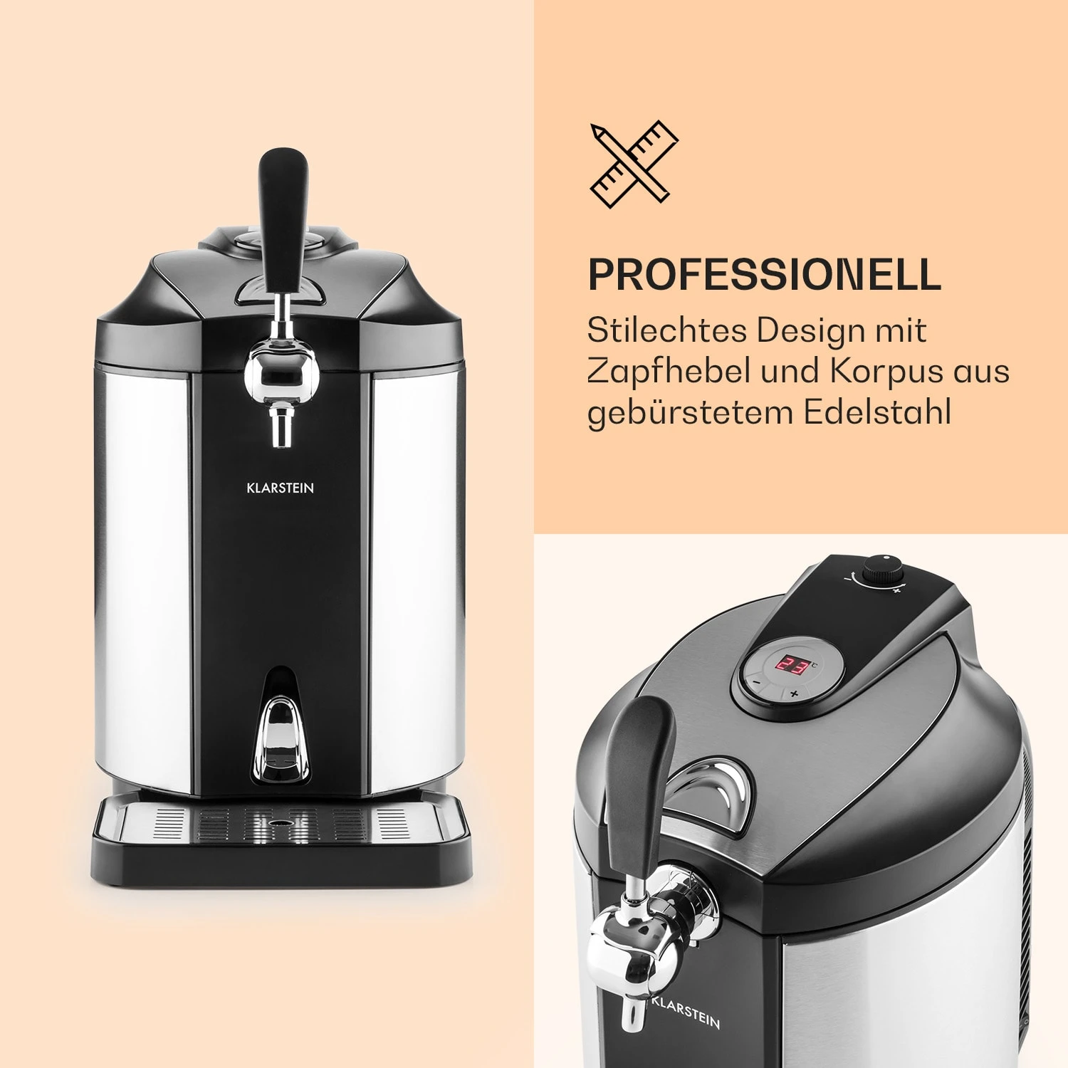 Die Klarstein Skal Bierzapfanlage sorgt für gekühlten Biergenuss aus allen 5 Liter Fässern. Dank CO2-Gaskartuschen-Drucksystem erhält der Gerstensaft immer den richtigen Druck für eine herrliche Schaumkrone. Damit du auch Heineken-Fässchen – für die kein CO2-Druck nötig ist – anzapfen kannst, wird ein entsprechender Anschlussadapter gleich mitgeliefert.