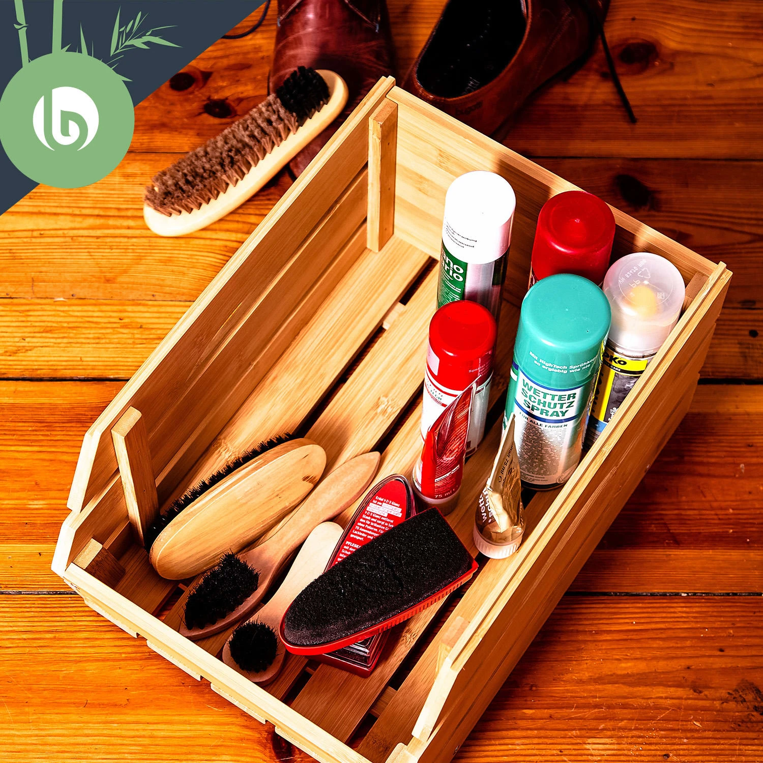 - hochwertige Stapelkiste aus Bambus