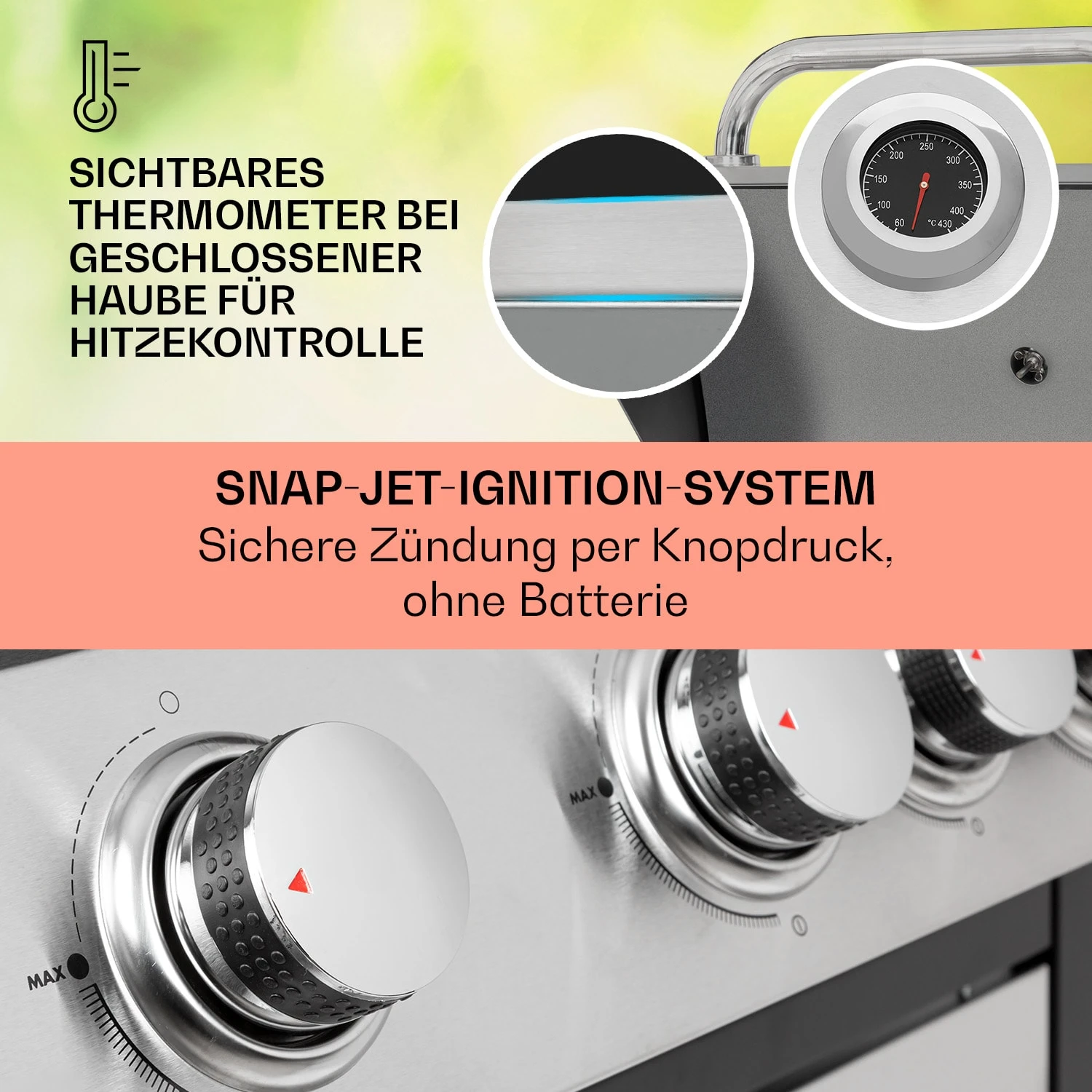 Tomahawk Gasgrill 4×3,6 KW + 2,7 KW Brenner 66×43,5 Cm Grill Edelstahl
